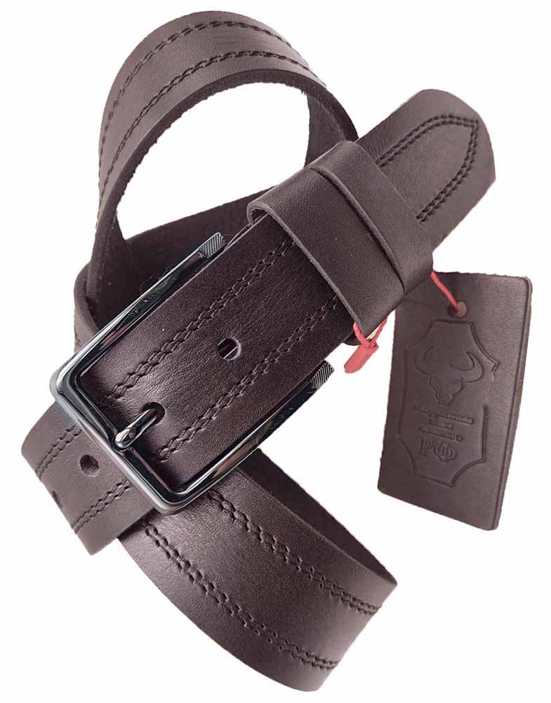Ремень изготовлен из высококачественной кожи иностранного производства и оснащен классической фурнитурой. Разнообразные строчки, клепки и люверсы придают ремню оригинальность и неповторимость.